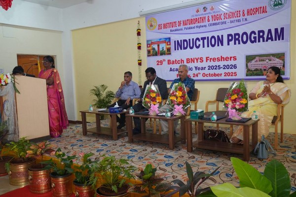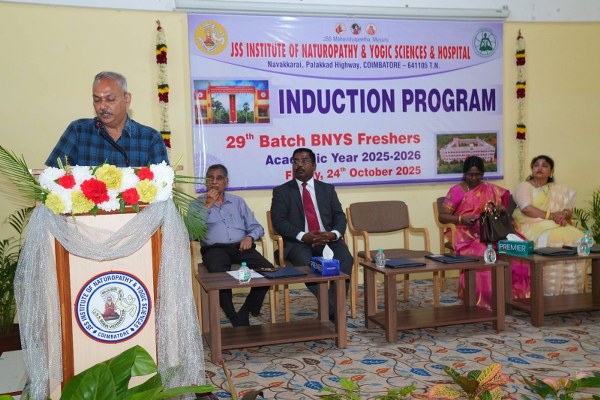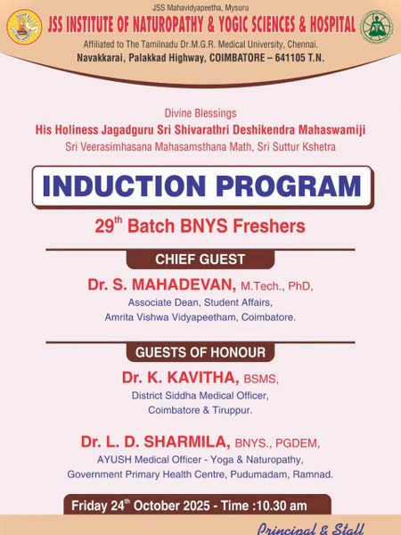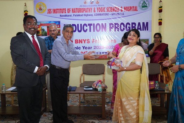 JSS INYS proudly conducted the Induction Program for the 29th Batch of BNYS Freshers, marking the start of an inspiring journey into the world of Naturopathy and Yogic Sciences View Larger Image admin2025-11-04T10:22:51+00:00 Share This Story, Choose Your Platform! FacebookTwitterLinkedInRedditWhatsappGoogle+TumblrPinterestVkEmail