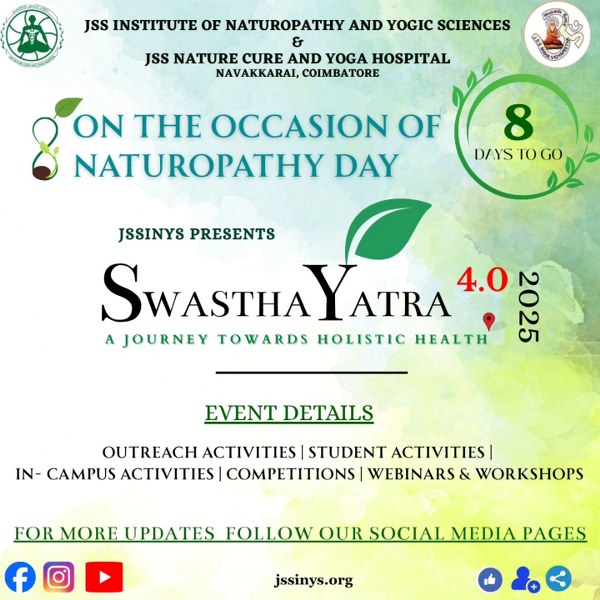 JSS INYS proudly presents Swastha Yatra 4.0 – A Journey Towards Holistic Health, on the occasion of Naturopathy Day 2025 View Larger Image By admin|2025-11-19T06:38:56+00:00November 19th, 2025|Image Gallery|0 Comments Share This Story, Choose Your Platform! FacebookTwitterLinkedInRedditWhatsappGoogle+TumblrPinterestVkEmail